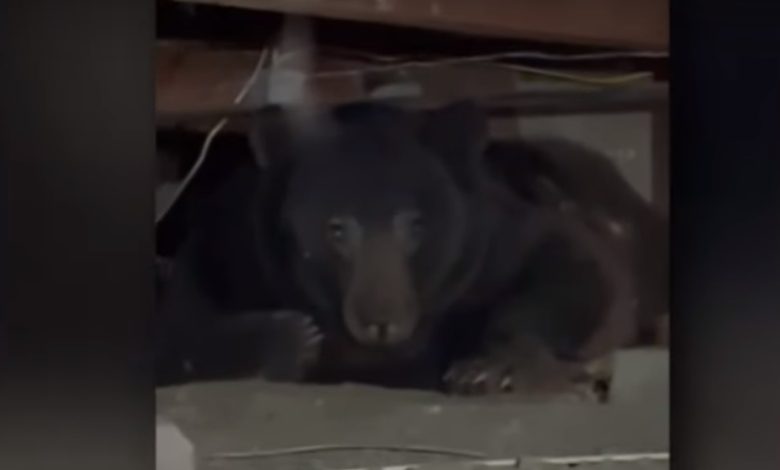 عثرت سيدة على دب أسود ضخم ظهر بشكل مباغت تحت منزلها، حيث بقي هناك لفترة طويلة رغم المحاولات المضنية التي قامت بها تينا هرتزوغ للتخلص من الحيوان غير المرحب به.