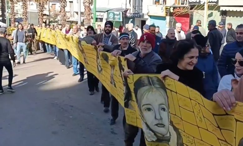 في السويداء .. لوحة بطول 300 متر تستعرض صور المعتقلين و الشهداء الذين قضوا في سجون بشار الأسد ( فيديو )