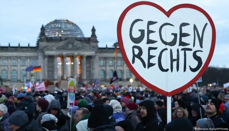 وجاءت هذه المظاهرات بسبب ما كشفته منصة “كوريكتيف” الإعلامية الاستقصائية في وقت سابق من هذا الشهر عن اجتماع عقده متطرفون يمينيون في نوفمبر الماضي في مدينة بوتسدام القريبة من العاصمة الألمانية برلين.