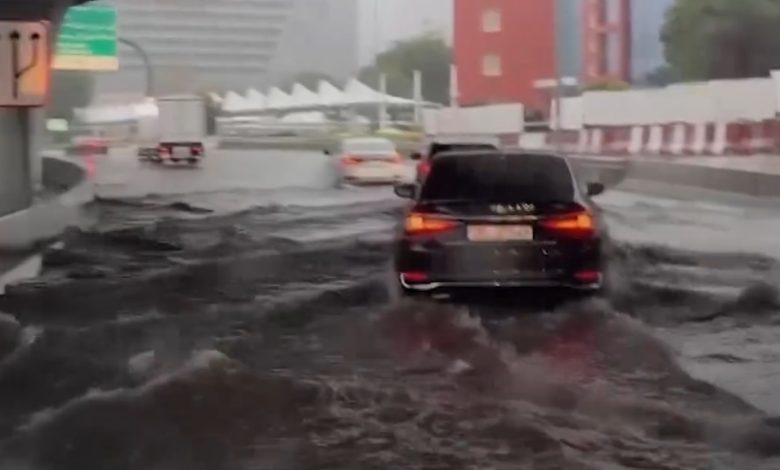 مشاهد نادرة في الإمارات .. تساقط برد في مدينة العين و أمطار غزيرة تغرق الشوارع في دبي ( فيديو )