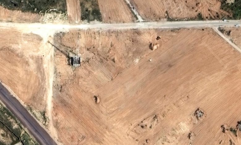 تظهر صور الأقمار الصناعية التي قدمتها شركة ماكسار تكنولوجيز، عشرات الجرافات ومعدات البناء وهي تقوم بتسوية الأراضي القريبة من الحدود المصرية مع قطاع غزة.