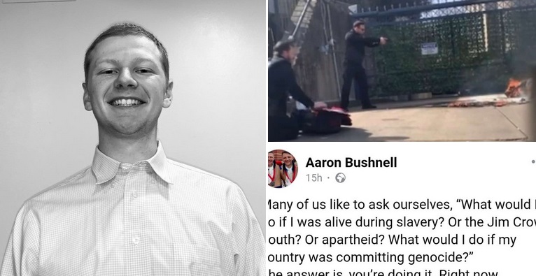 وأفادت وسائل إعلام أمريكية أن لقطات بثها هذا الأخير على الهواء مباشرة عبر منصة تويتش، تُظهره بزي عسكري وهو يعلن أنه “لن يكون متواطئا في إبادة جماعية” ويسكب على نفسه سائلا. ثم يحاول أن يضرم النار في نفسه وهو يصرخ “حرروا فلسطين!” إلى أن سقط على أرضا.