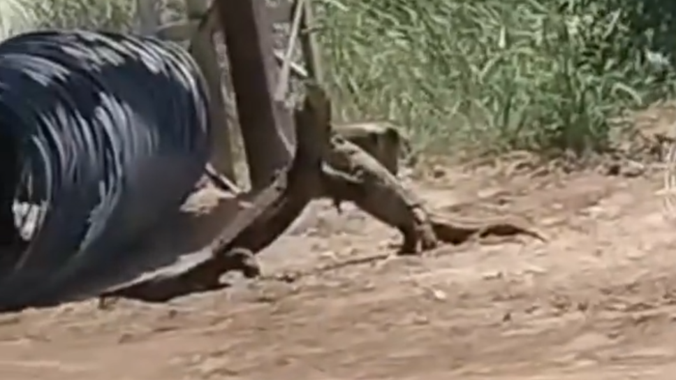 وكشف الفيديو المتداول خروج اثنين من تنين الكومودو وتصارعهما بجانب طريق رئيسي وبالقرب من حقول زراعية ما أثار الرعب والفزع في قلوب المارة الذي تصادف مرورهم على الطريق.