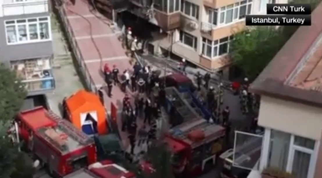 وأظهرت صور للحادث نشرها حساب عمدة إسطنبول على منصة “إكس”، موقعا محترقا في منطقة حضرية. (CNN)