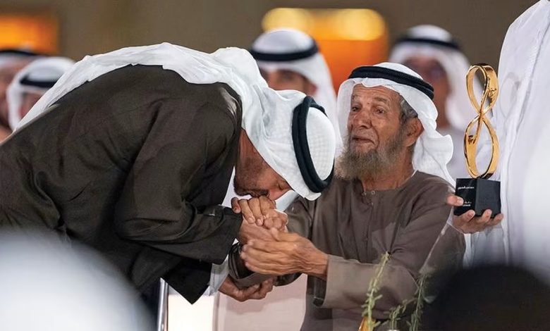 تداول نشطاء على مواقع التواصل الاجتماعي لقطة للرئيس الإماراتي، الشيخ محمد بن زايد، ومفاجأته لرجل مسن بتقبيل يده خلال تكريمه الأمر الذي أثار تفاعلا.