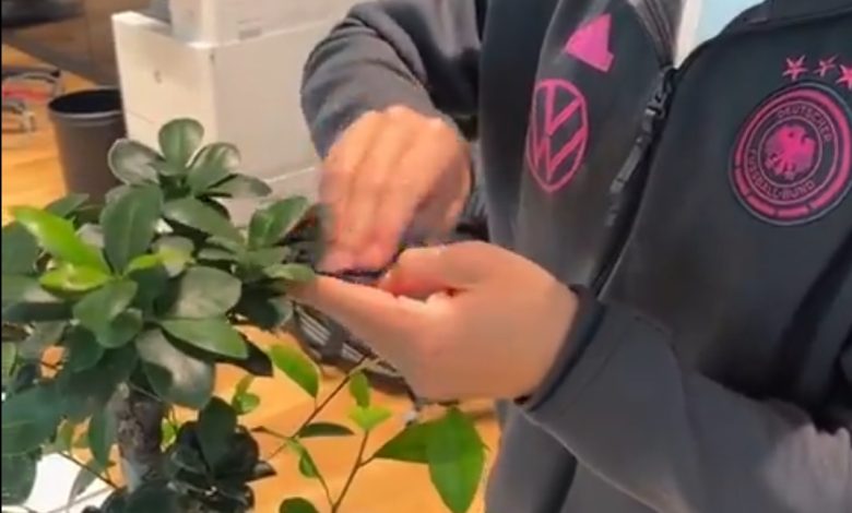 اللاعب يوشوا كيميش هو المسؤول عن العناية بشجرة البونساي الخاصة بالمنتخب الألماني. شارك ديفيد راوم مقطع فيديو للاعب خط وسط بايرن ميونيخ وهو يمسح بعناية أوراق النبتة، ويقول له، “عليك تنظيف الأوراق حتى تتمكن من التنفس. يقول أحد أصدقائي أنه من المهم نفض الغبار عن ورقة واحدة في كل مرة”.