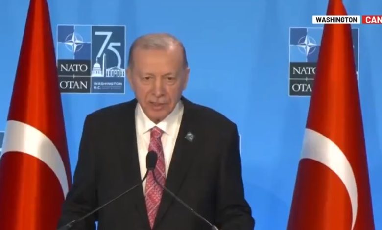 قال الرئيس التركي رجب طيب أردوغان، إن تركيا ترغب ببدء مرحلة جديدة من العلاقات مع سوريا، وذلك في تصريحات على هامش مشاركته في قمة حلف الناتو، في العاصمة الأمريكية واشنطن”.