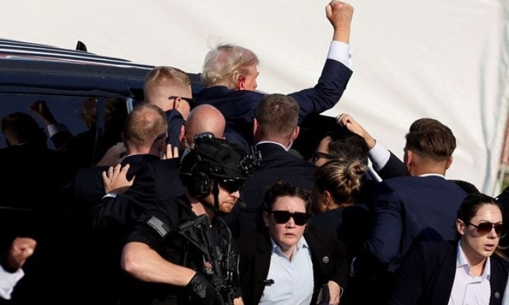 وهرع العديد من نساء جهاز الخدمة السرية لحماية ترامب بأجسامهن مع سماع دوي الطلقات النارية.