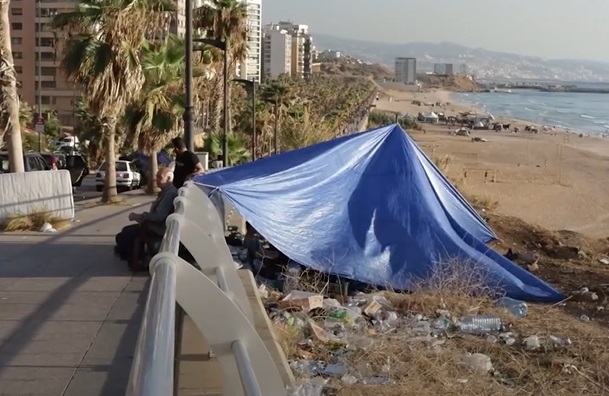 بعد القصف الذي تعرضت له مساكنهم .. سوريون يفترشون شاطئ بيروت ( فيديو )