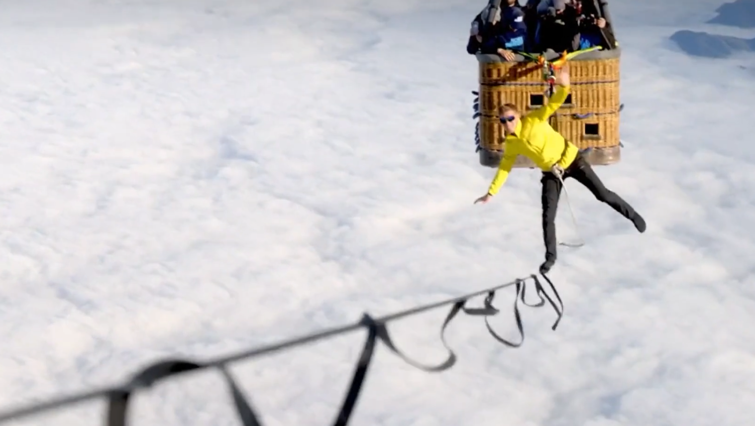 ألمانيان يحطمان الرقم القياسي في التزلج على الحبل المتحرك بارتفاع 2500 متر ( فيديو )