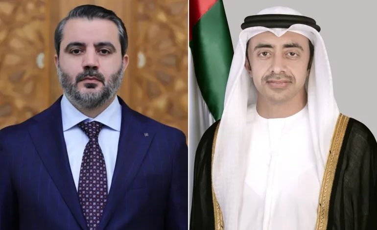 بحث وزير الخارجية الإماراتي الشيخ عبد الله بن زايد آل نهيان في اتصال هاتفي مع نظيره في الحكومة السورية الانتقالية أسعد الشيباني آخر التطورات في سوريا، وفقا لوكالة الأنباء الإماراتية.