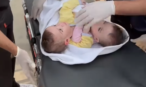 وصول توأمين سياميين سوريين إلى السعودية للخضوع لعملية فصل ( فيديو )