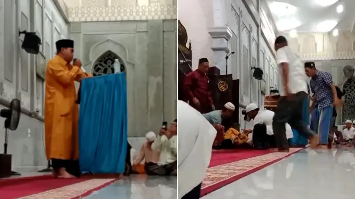 وسجل أحد المواطنين الجالسين في مسجد المجاهدين بقرية غيدونغ غيدونغ، في بلدة جوان التابعة لمحافظة بيرين شرقي إقليم آتشيه الإندونيسي، المشهد بعدسة هاتفه المحمول، وشُوهد الشيخ القارئ فيه مرتديا ثوبا عربيا أصفر اللون.