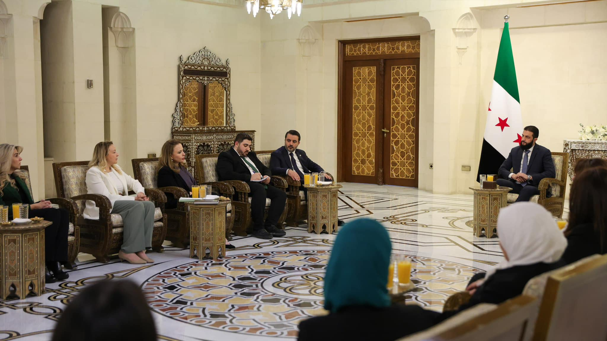 التقى وفد من سيدات سوريا مقيمات في أمريكا، أحمد الشرع، في القصر الجمهوري بدمشق، يوم الاثنين.