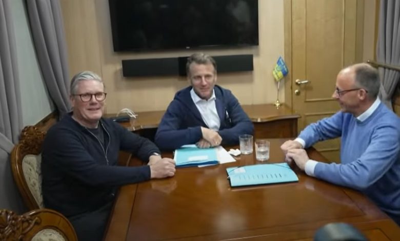 وجرى اللقاء بين ماكرون وميرتس، إضافة إلى رئيس الوزراء البريطاني كير ستارمر، ورئيس الوزراء البولندي دونالد توسك، على متن قطار متجه إلى كييف.