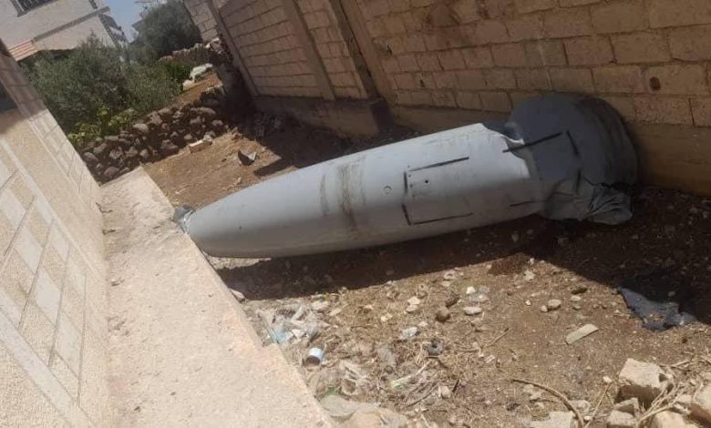 * الصورة: خزان وقود سقط من طائرة إسرائيلية في ريف درعا (التلفزيون العربي).