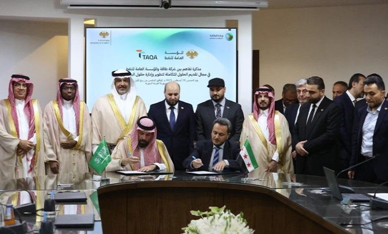 فيما ذكرت وكالة “سانا” السورية أن “وزارة الطاقة توقع اتفاقية وعددا من مذكرات التفاهم مع شركات سعودية في مجالات الكهرباء والنفط والغاز”.
