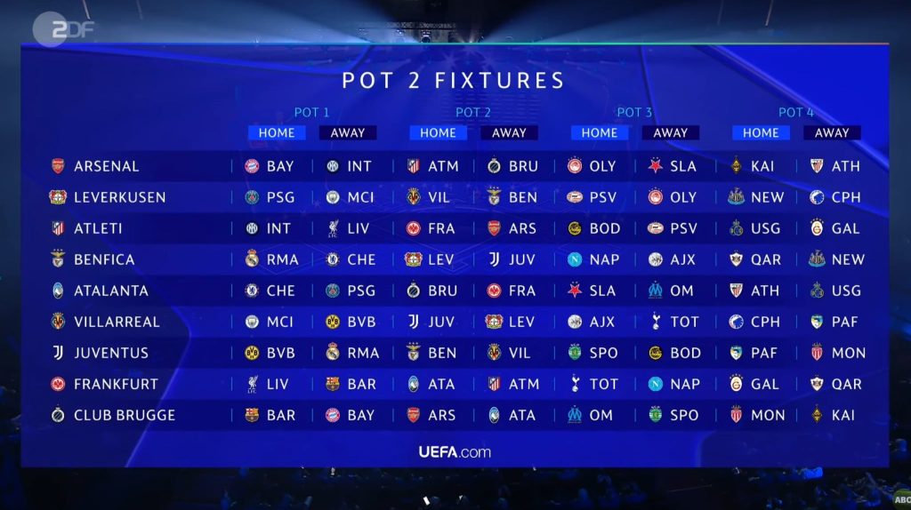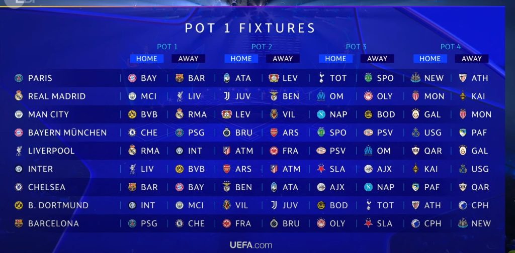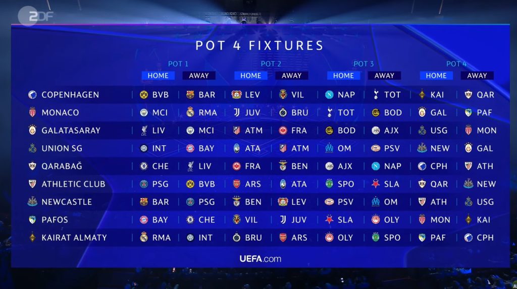 نتائج قرعة دوري أبطال أوروبا لموسم 2025 - 2026