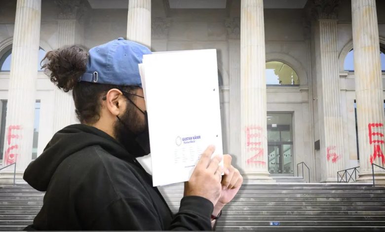 وبحسب صحيفة Die Welt، فقد اعترف المتهم بأنه شارك في سبتمبر/أيلول 2024 مع آخرين في تلطيخ الواجهة التاريخية للمبنى بعبارات من بينها „Free Gaza“. كما شملت الكتابات التخريبية لوحة تذكارية للشاعر أوغوست هاينريش هوفمان فون فالرسليبن.