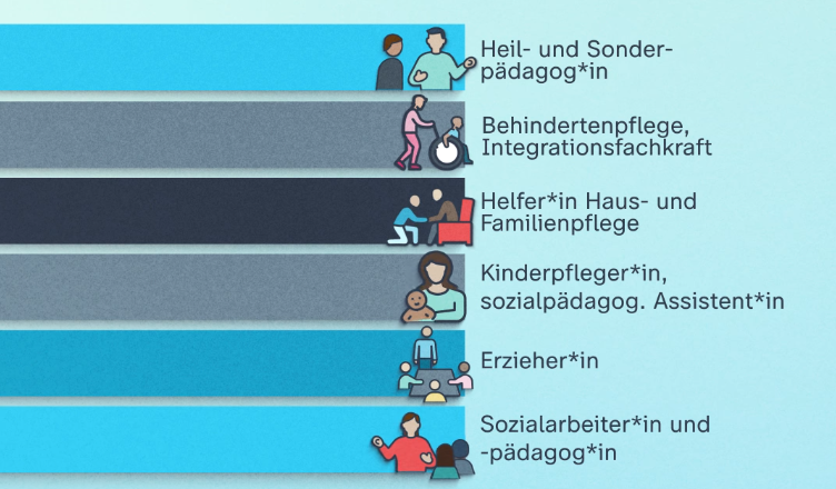 مربو الأطفال والمساعدون الاجتماعيون (Kinderpflegerin, sozialpädagog. Assistentin) يحصلون على 3,773 يورو شهريًا.