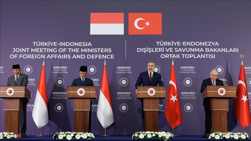 جاءت تصريحات فيدان خلال مؤتمر صحفي مشترك الجمعة مع وزير الدفاع يشار غولر، ونظيريهما من إندونيسيا سوغيونو، وجعفري شمس الدين، اللذين يزوران العاصمة التركية أنقرة. (ANADOLU)