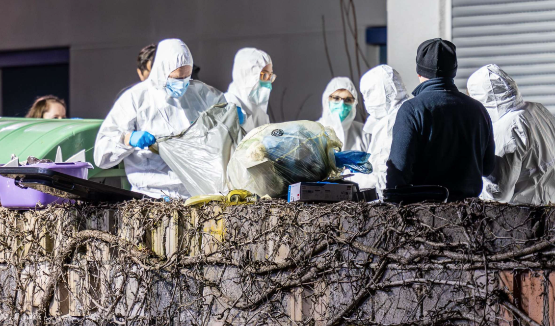 مساء الأربعاء، تطورت الأحداث بشكل مفاجئ، إذ عُثر على جثة داخل إحدى حاويات القمامة المقابلة لمدخل المبنى، وكانت ملفوفة بأكياس قمامة رمادية.