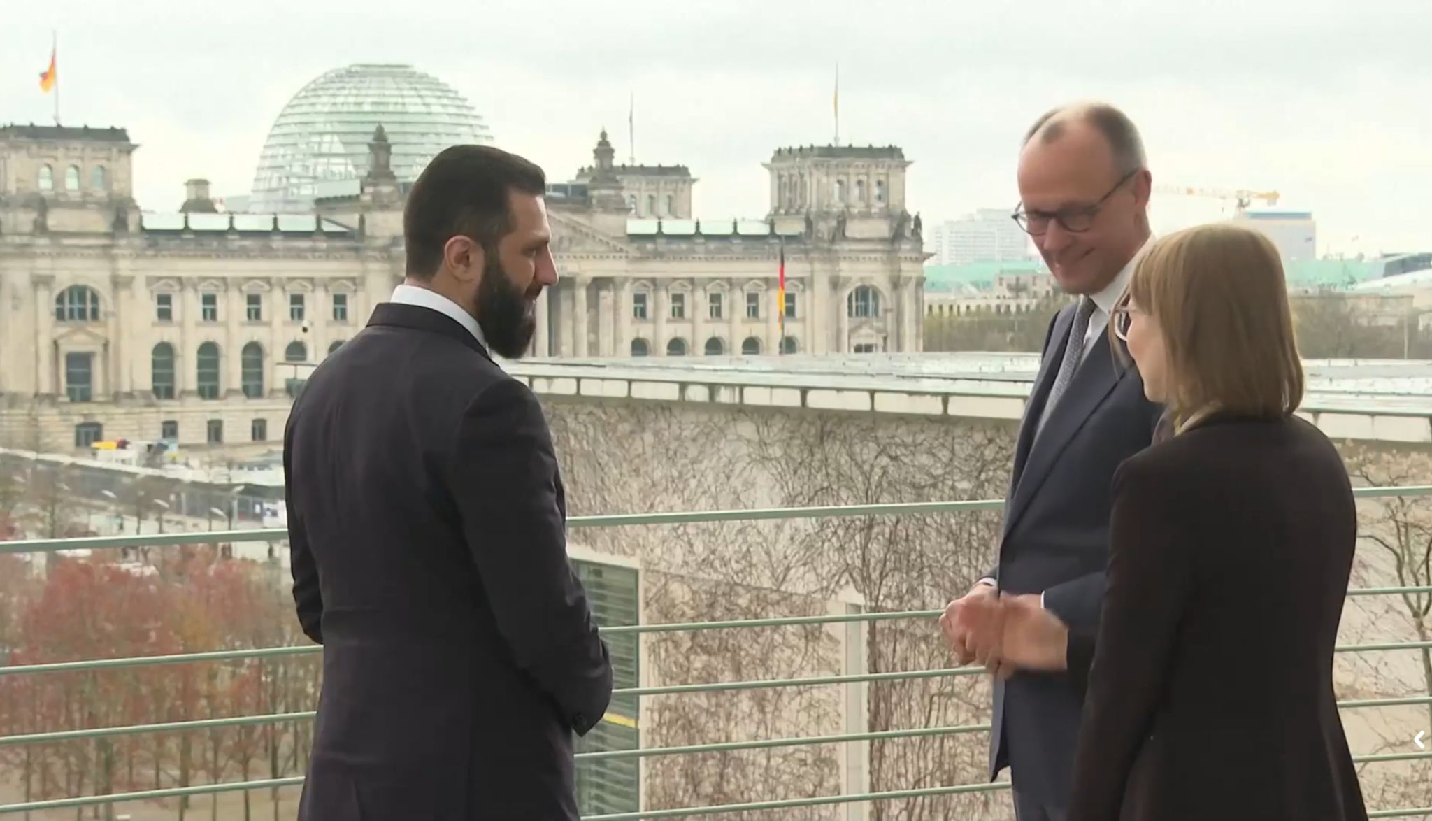 ميرتس: شكرت الرئيس الشرع على أنه كان قادراً على التفاهم مع الأكراد في سوريا، والعملية الآن تسير على قدم وساق، ويتم إدماج القوات الكردية في القوات السورية، ولن يكون الأمن مجزأً، ويجب أن يُحصر السلاح بيد الدولة، وهذا هو مفهومنا لدولة القانون.