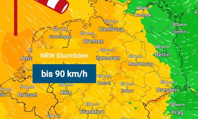 وبحسب ما أفاد به موقع الطقس الألماني، فقد سُجلت منذ ساعات الصباح الأولى في ولاية شمال الراين-وستفاليا رياح قوية بلغت سرعتها نحو 90 كيلومترًا في الساعة، ما أدى إلى سقوط أشجار وحدوث اضطرابات في حركة المرور على الطرقات وخطوط السكك الحديدية.