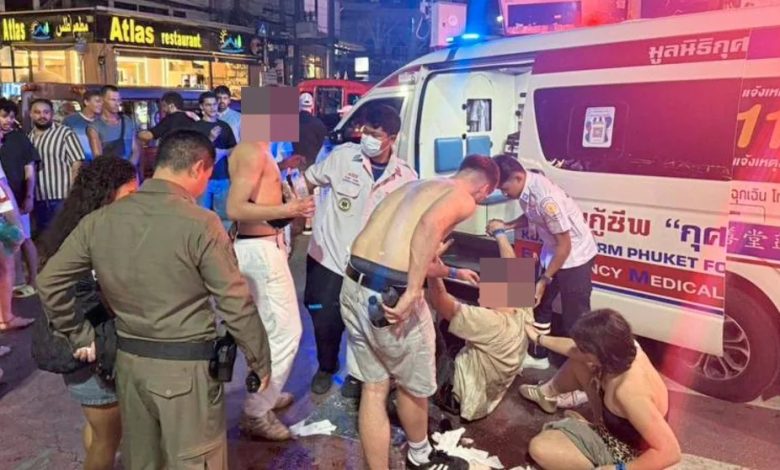 تعرض ثلاثة سياح ألمان لاعتداء عنيف على إحدى مناطق السهر في جزيرة فوكيت التايلاندية، حيث انهال عليهم عدد من الأشخاص بالضرب والركل على الرأس والجسم، ما أسفر عن إصابتهم بجروح متفاوتة.