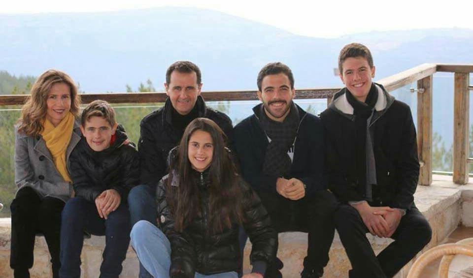 صورة حديثة لعائلة بشار الأسد مع ابن آصف شوكت في القرداحة