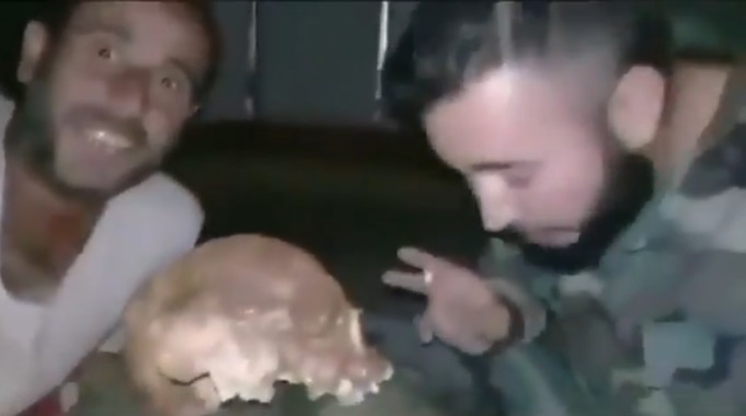 وأظهر المقطع المصور الجديد بقايا جمجمة يعتقد أنه تم نبشها من القبر، وإلى جانبها عنصران من الجيش النظامي يسخران ويضحكان.