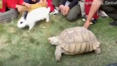 سباق بين سلحفاة و أرنب يؤكد ” القصة الأسطورة ” ( فيديو )