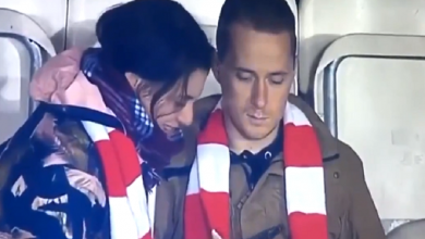 مقطع طريف لشاب و صديقته خلال مباراة كرة قدم ( فيديو )