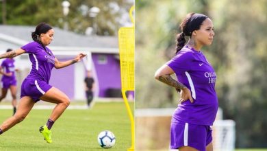 لاعبة منتخب أمريكا لكرة القدم النسائية تشارك بتمرينات فريقها و هي حامل !
