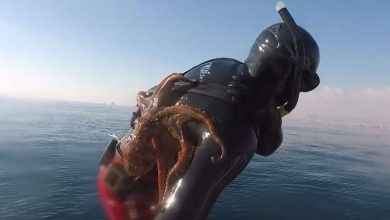 معركة فريدة من نوعها بين أخطبوط و غواص ! ( فيديو )