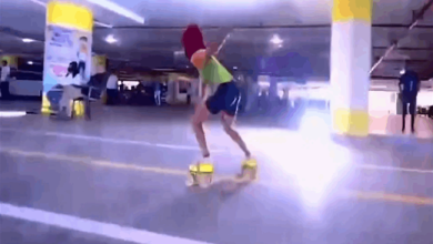 طفلة تدخل ” موسوعة غينيس ” بالتزلج تحت 20 سيارة ( فيديو )