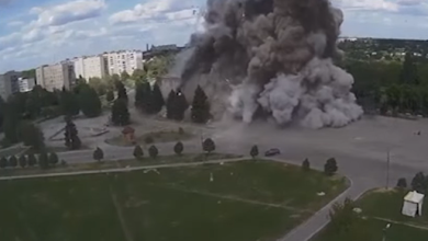 توثيق لحظة استهداف مبنى في منطقة خاركيف الأوكرانية بضربة صاروخية مدمرة ( فيديو )