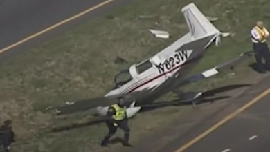 لحظة اصطدام طائرة صغيرة بطريق سريع في ولاية جورجيا الأمريكية ( فيديو )