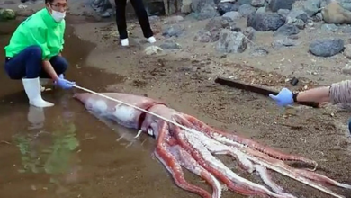 عثر مرتادو شاطئ أوجو بمحافظة فوكوي اليابانية، مؤخرا، على حبّار عملاق بشكل غريب. ويبلغ طول الحبّار الذي جرفته الأمواج لشاطئ…