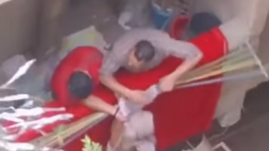 القبض على أب حاول إلقاء ابنته من الشرفة ( فيديو )