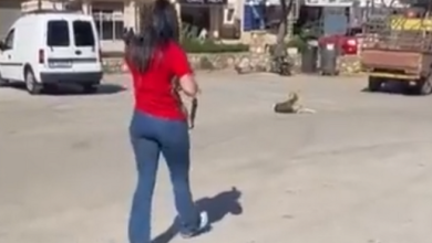 امرأة عربية تفرغ رصاصها في كلب دون رحمة ( فيديو )