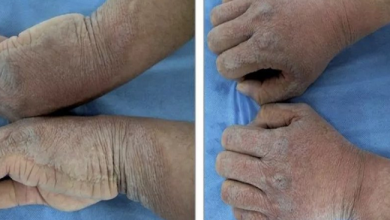 أصيب رجل في العشرينات من عمره بـ “التجاعيد المفرطة”؛ تجاعيد بيضاء مشرقة وبقع من الجلد السميك على يديه كلما غمرهما…