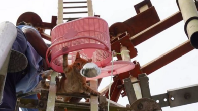 إنقاذ قط من أعلى برج اتصالات ( فيديو )