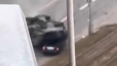 أظهر فيديو انتشر على نحو واسع، دبابة قيل إنها روسية أثناء دهسها لسيارات مواطنين أوكرانيين في مدينة كييف مع تقدم…