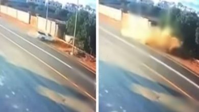 نجاة سائق و مرافقه بأعجوبة من حادث مروع ( فيديو )