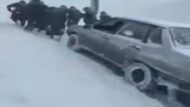 انتشر مقطع فيديو على مواقع التواصل الاجتماعي يوثق مجموعة من نساء جمهورية داغستان الروسية يسحبن سيارة سقطت في بحيرة متجمدة.…