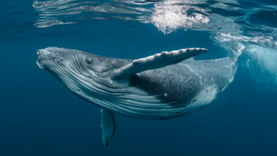 قرش يهرب من فم حوت أحدب عملاق في الثانية الأخيرة ( فيديو )