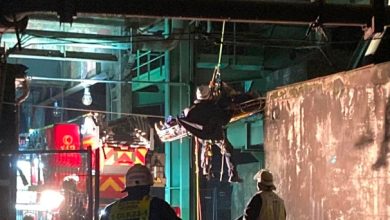 أمضى طاقم إطفاء ثلاث ساعات ليلة الجمعة/السبت في محاولة لتحرير رجل علق على ارتفاع 45 متراً فوق الأرض بين أنابيب،…