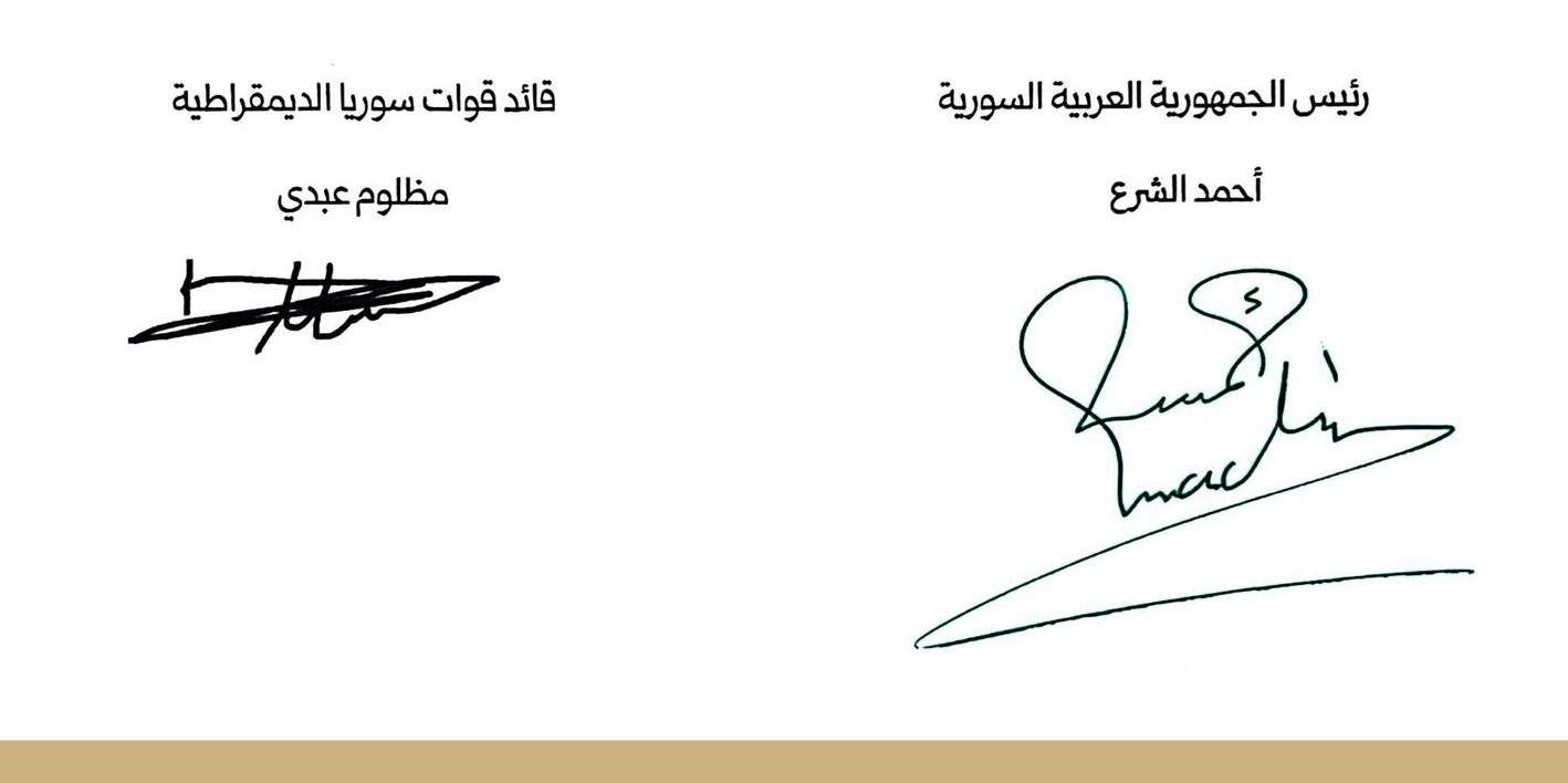 نص اتفاق ” الشرع – عبدي ” الجديد المتعلق بـ ” وقف إطلاق النار و الاندماج الكامل ”