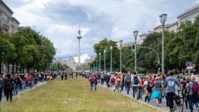 خرج بضعة آلاف في مسيرات بشوارع برلين، الأحد، لليوم الثاني على التوالي، في مظاهرات غير مصرح بها، احتجاجاً على التطعيم…